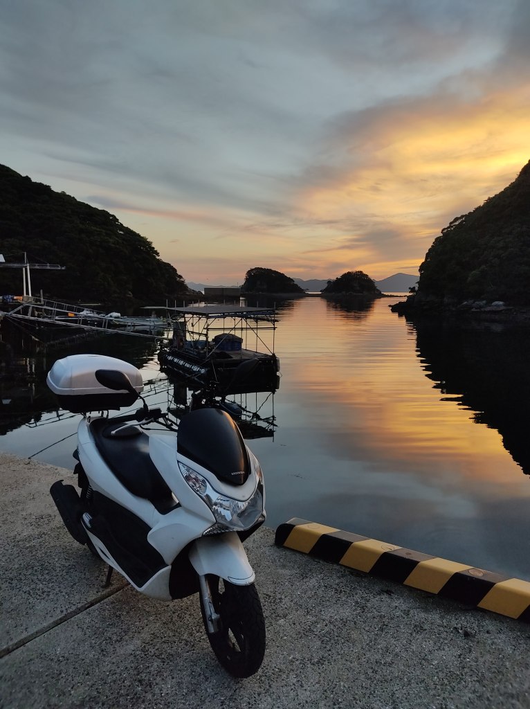 After this wonderful sunset I started heading to Sasebo. The road that goes down from Nagushiyama was built between rice terraces and it followed by road 18, which goes along the coast passing by tiny local fishing towns.