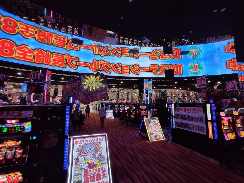 15 kilometers before reaching Sasebo, Japan had another surprise awaiting. Literally in the middle of nowhere, by the river and a few factories there were hundreds of cars and trucks parked surrounding a huge and flashy building. It was a Mega Pachinko center. Pachinko would be the equivalent of slot machines back home but with few different features. I was told by the staff that there were more than a thousand machines inside. (In a standard Pachinko in Tokyo there are around 100 to 200 machines.)