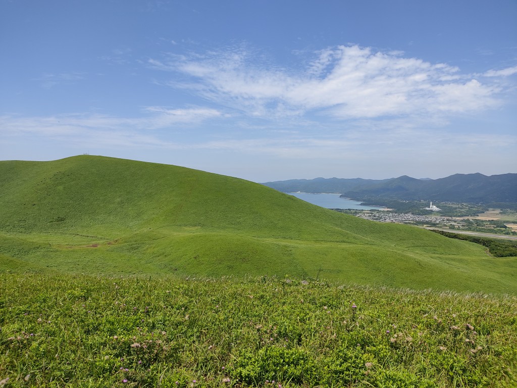 Before returning to the main town and concluding the whole island tour, consider taking road 384 eastward, which transitions into road 49. Brace yourself for a sight straight out of a fairy tale: Onidake, a grass-covered mountain housing a dormant volcano near the airport. For some, its picturesque beauty might evoke memories of an iconic desktop wallpaper.